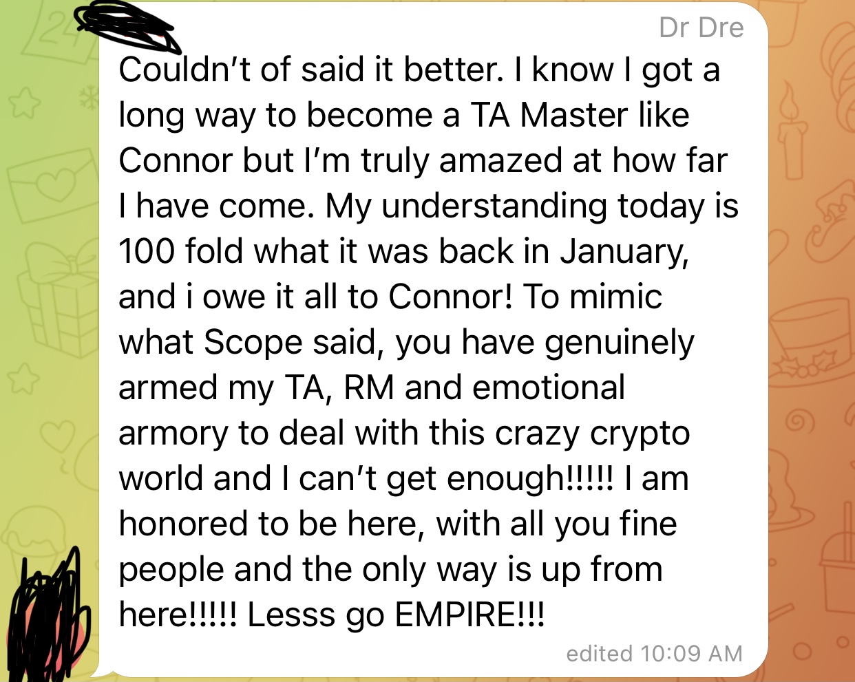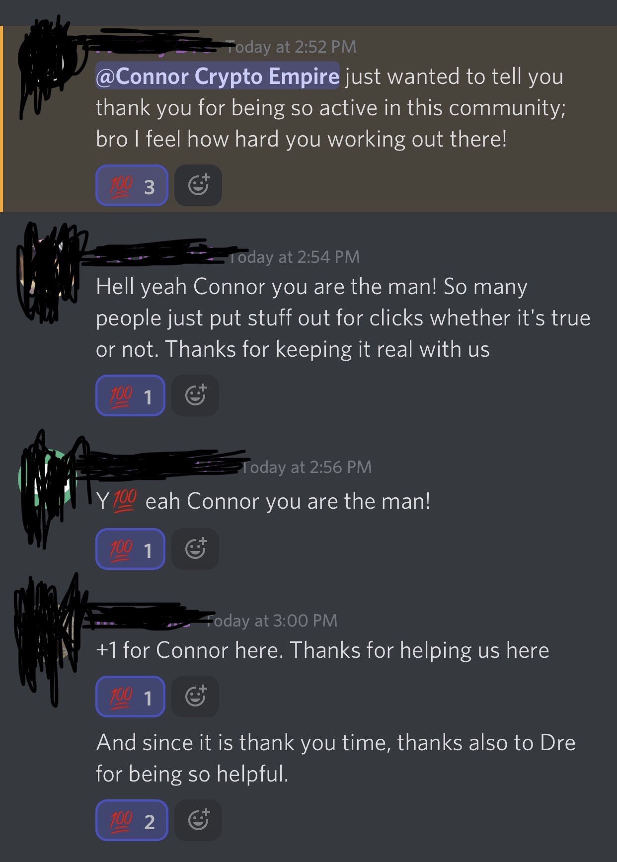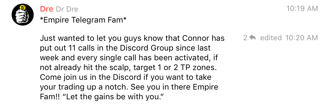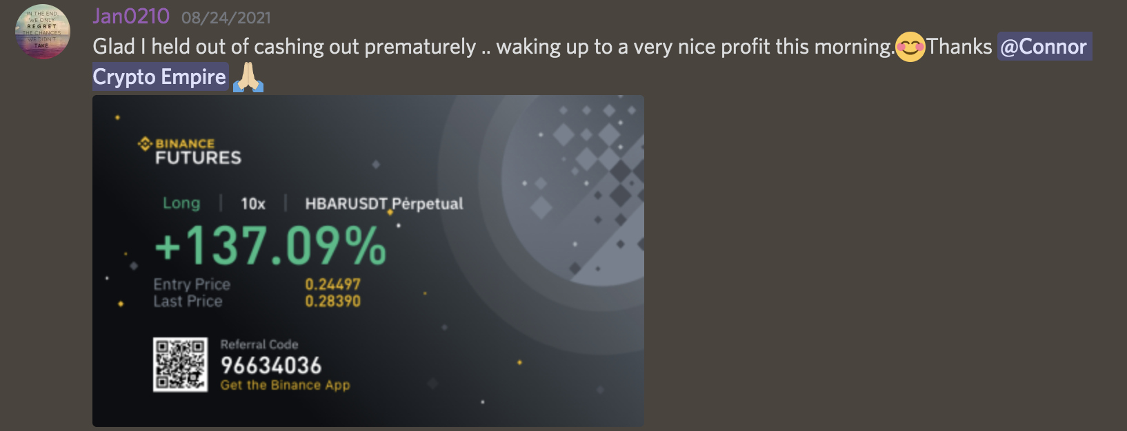 When you purchase access to Crypto Empire's Premium Calls Discord Server you also get complimentary access to Crypto Empire's 100K Trading Course. This course includes over 3 hours of video content by Connor showing you exact trading strategies, how to use exchanges, and the correct mindset to succeed as a crypto trader!