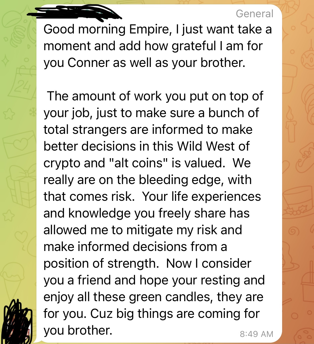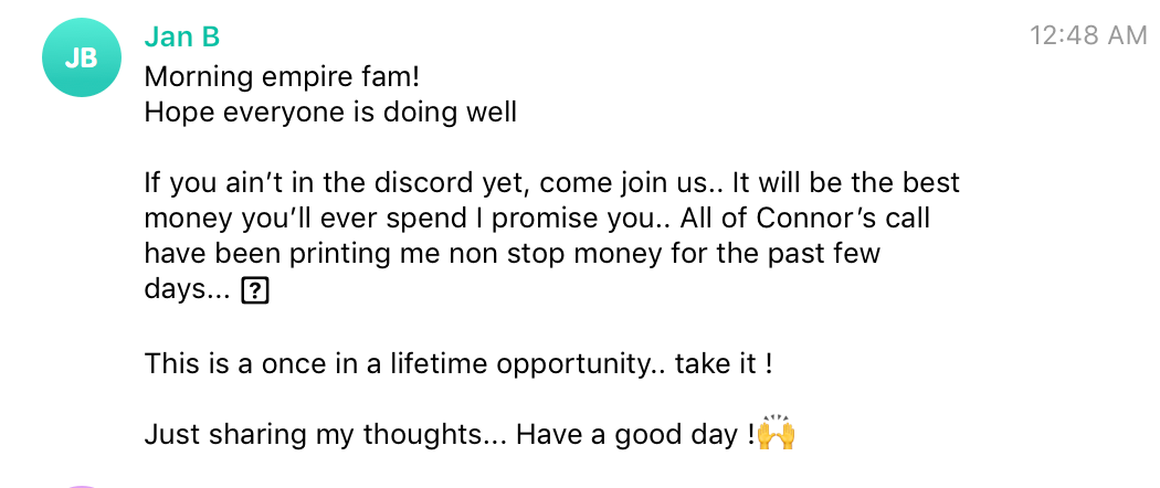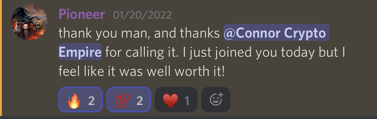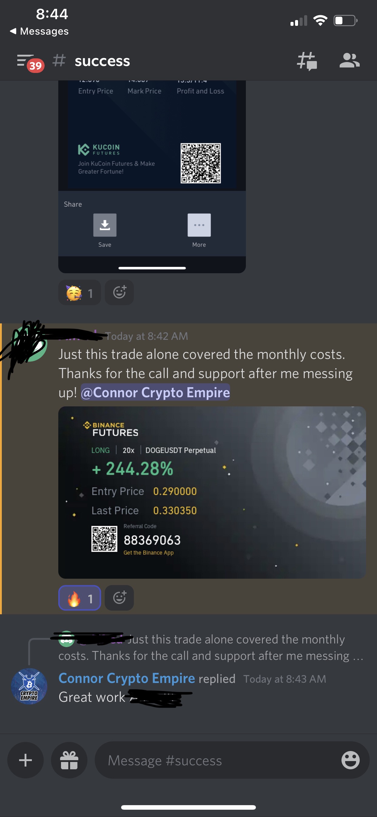 When you purchase access to Crypto Empire's Premium Calls Discord Server you also get complimentary access to Crypto Empire's 100K Trading Course. This course includes over 3 hours of video content by Connor showing you exact trading strategies, how to use exchanges, and the correct mindset to succeed as a crypto trader!